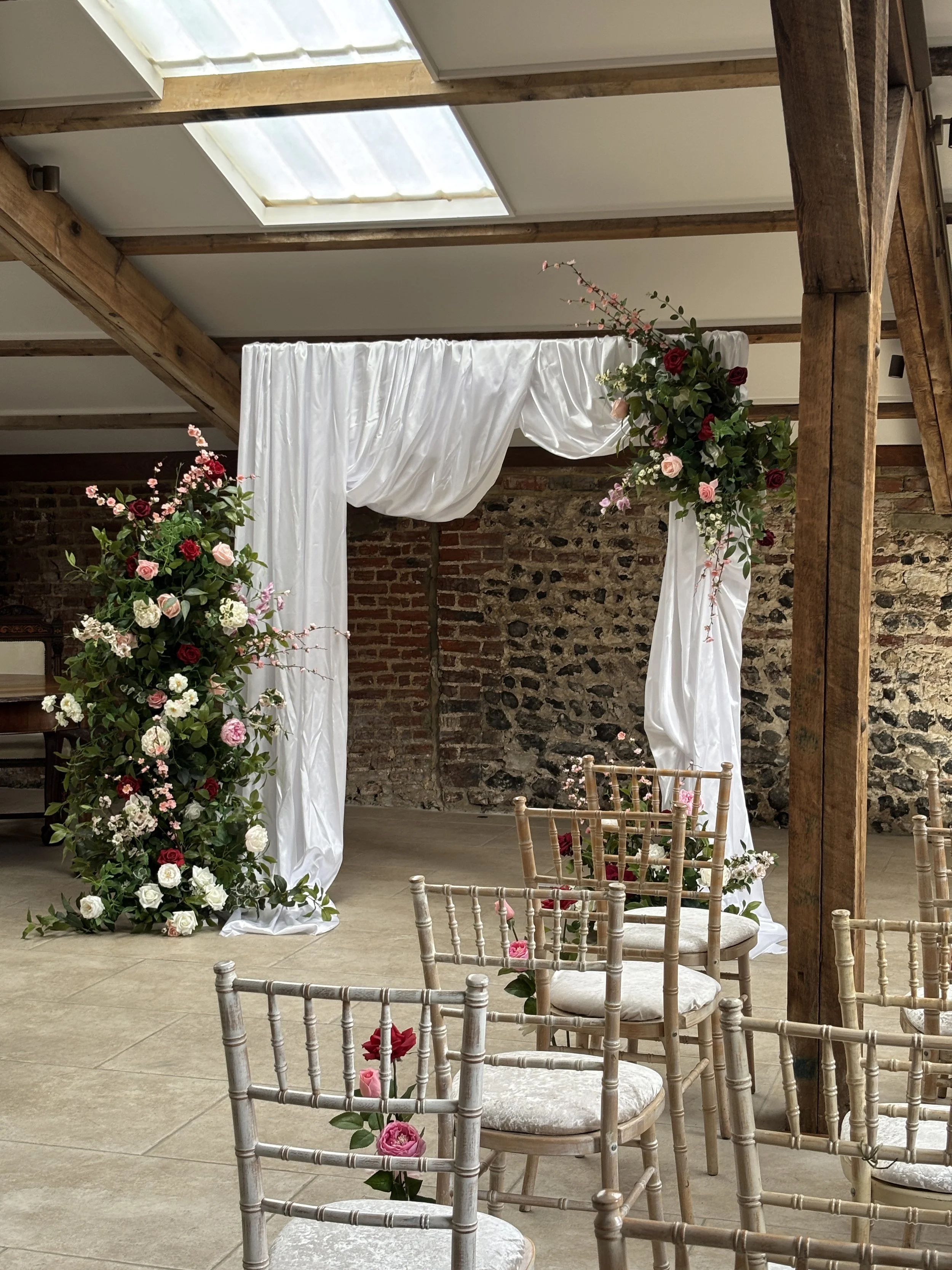 DRAPED FRAME SQUARE ARCH DESIGN WITH FLORAL ADDITIONS £320