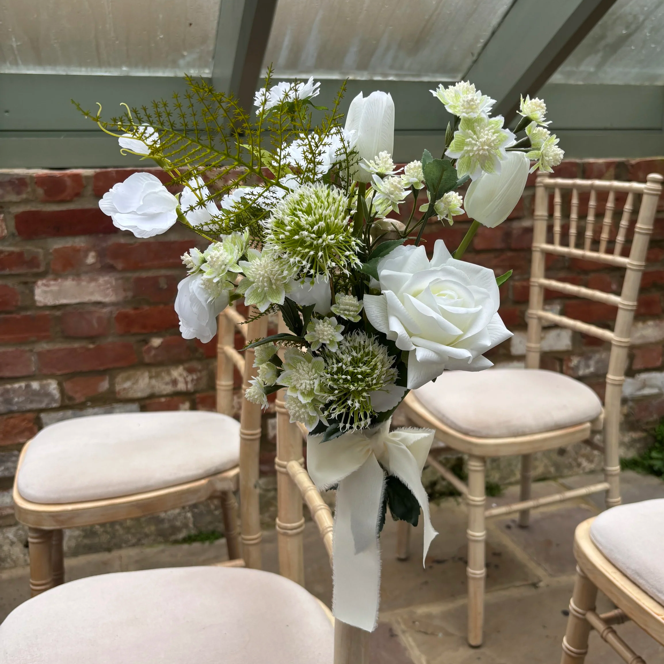 No pre made packages here! Every arrangement is made stem by stem for your wedding. You get to choose the flowers, the colours, the style, whatever you’re dreaming of. And because we work with artificial flowers, we can include anything you like, no matter the season.